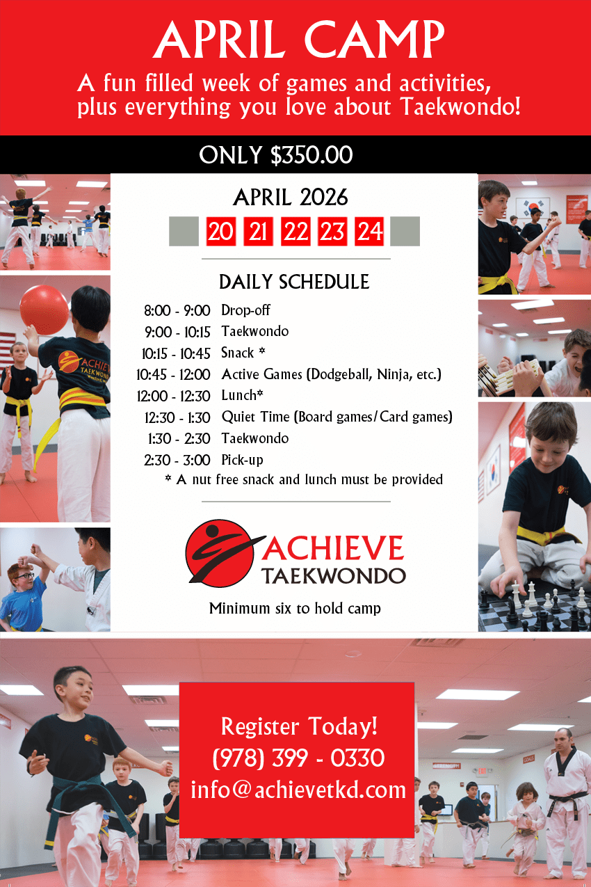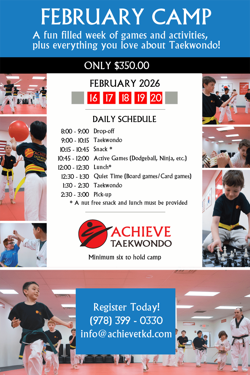 Contact us today at (978) 399-0330 or info@achievetkd.com to book your child’s unforgettable birthday experience!
